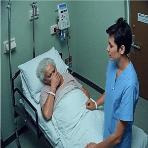 An elderly woman was living her final hours, and beside her was only a young